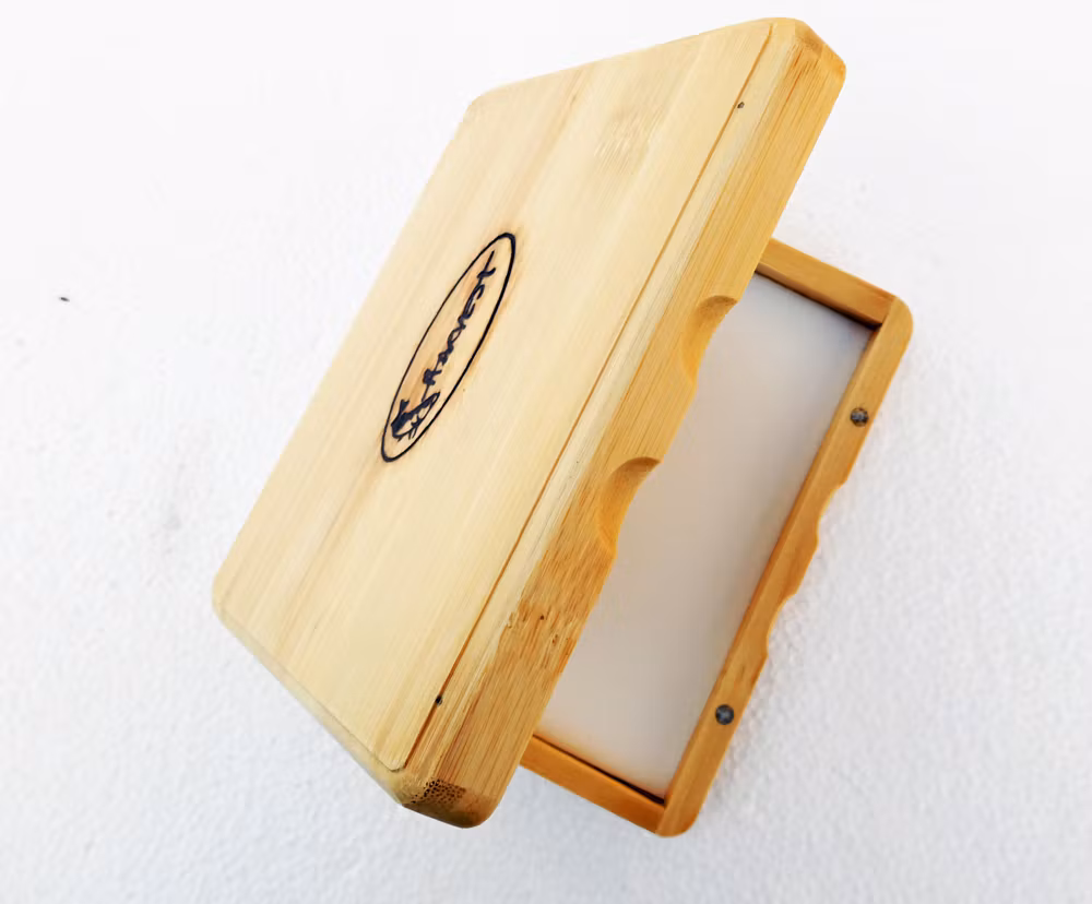 Harvest flugaskar i bambu, med små magneter i varje hörn som låser asken säkert, med ett litet "klick". Två olika färger. Ljus och Mörk.