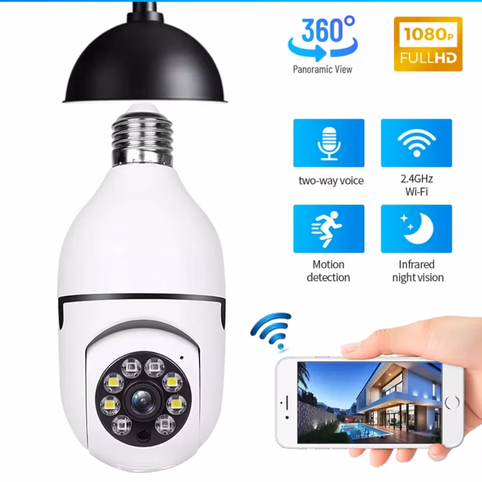 Övervakningskamera som skyddar och håller koll på ditt hem. Både Dag och Natt. Kameran roterar 360 Grader.