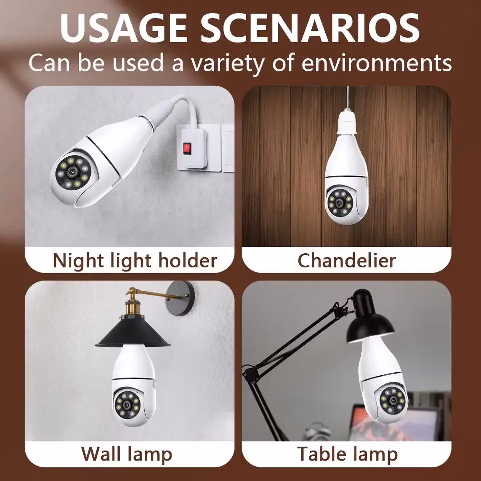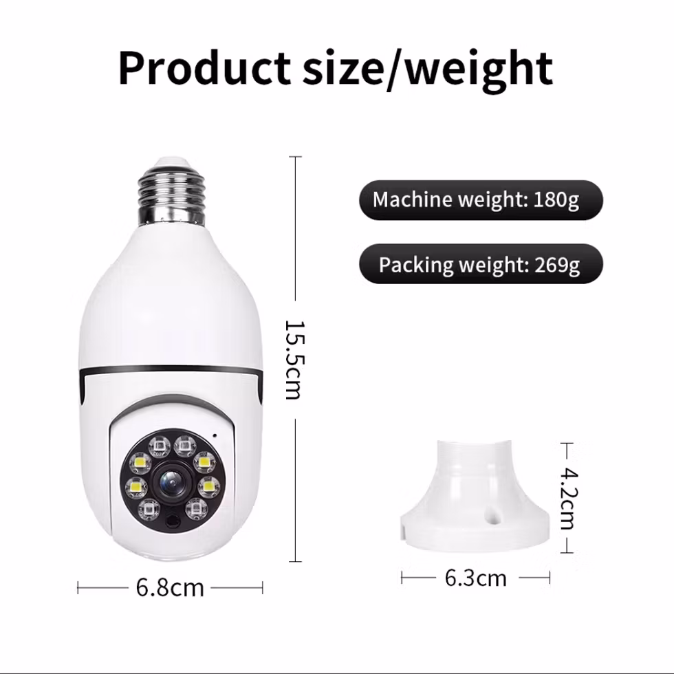 Paket innehåll: 1x kamera, 1x användarmanual, 1x Lamp sockel.
