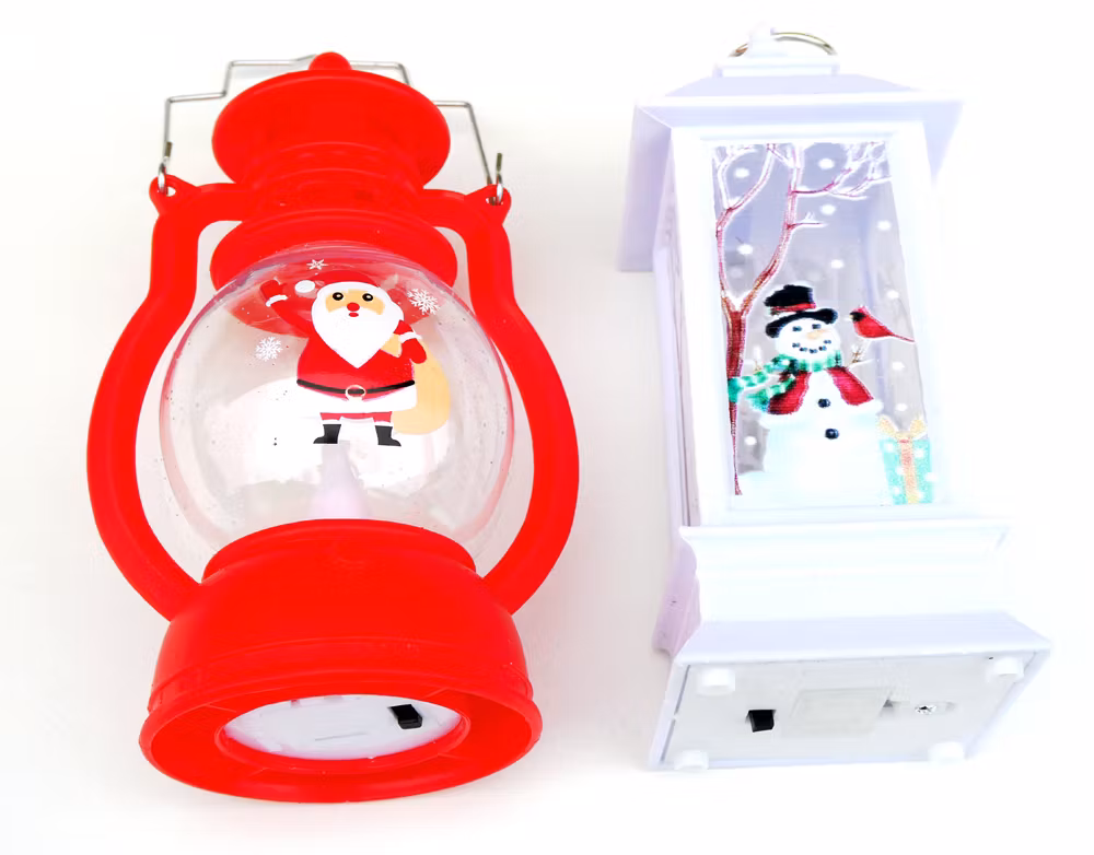 Sätt stämningen med dessa festliga lyktor. Den röda lyktan har en jultomte inuti, medan den vita lyktan visar en snögubbe och en fågel. Perfekt för att ska