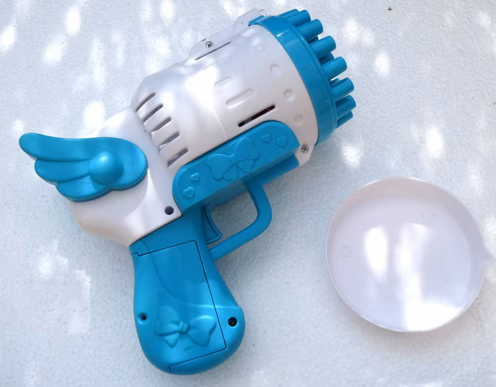 Kulspruta skjuter häftiga bubblor i många olika färger. Fat ingår, men ej såpa. Blanda själv. Teknisk specifikation Batteri: 3 st AA. Ingår ej.&n