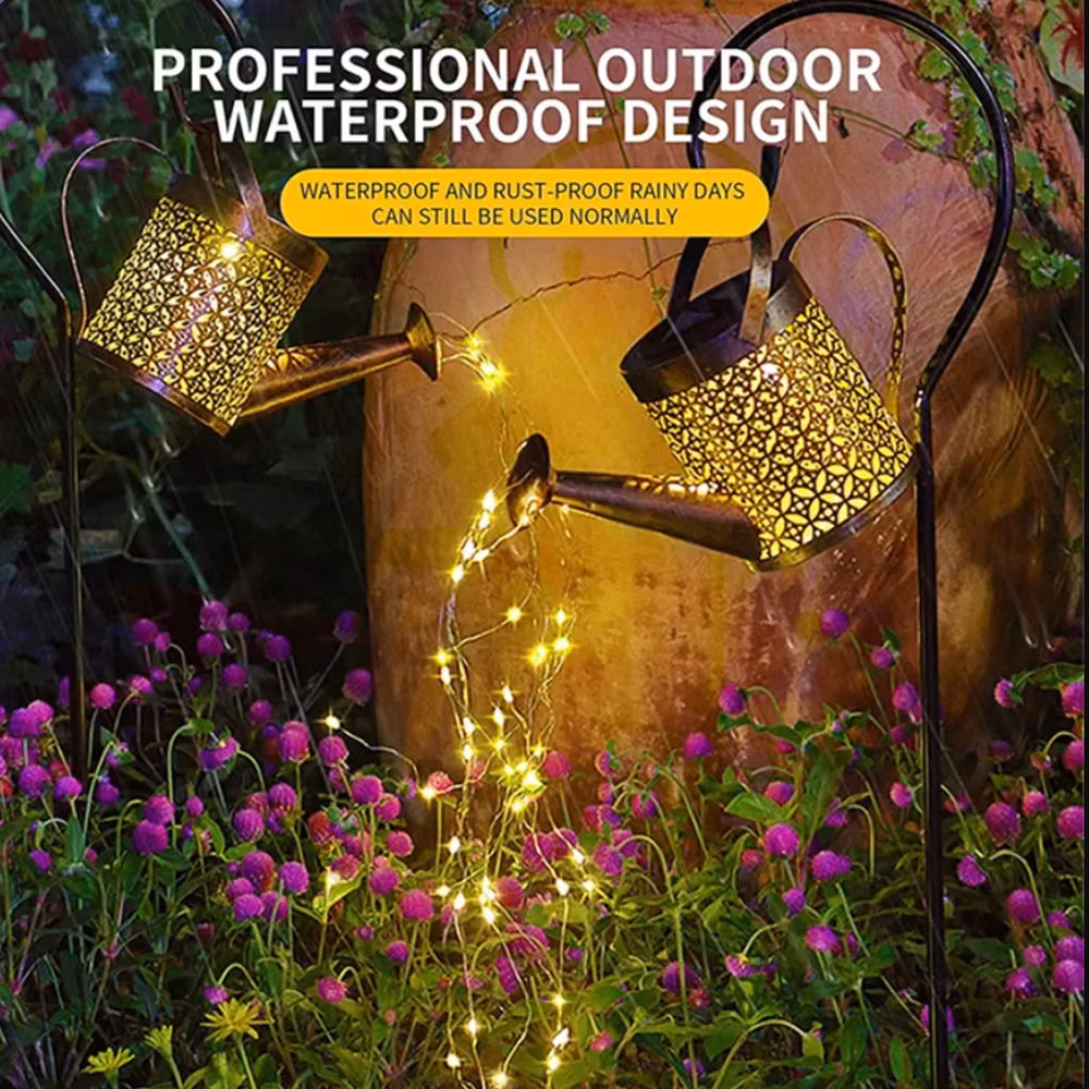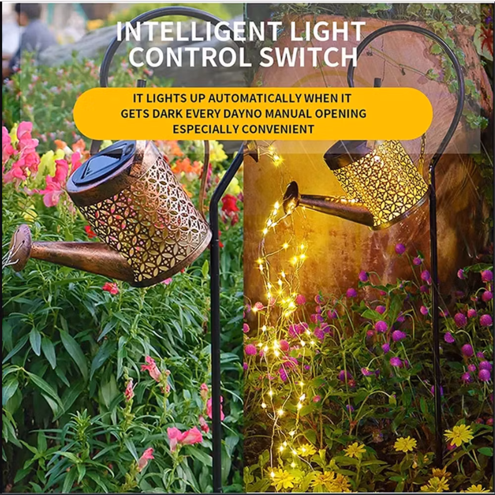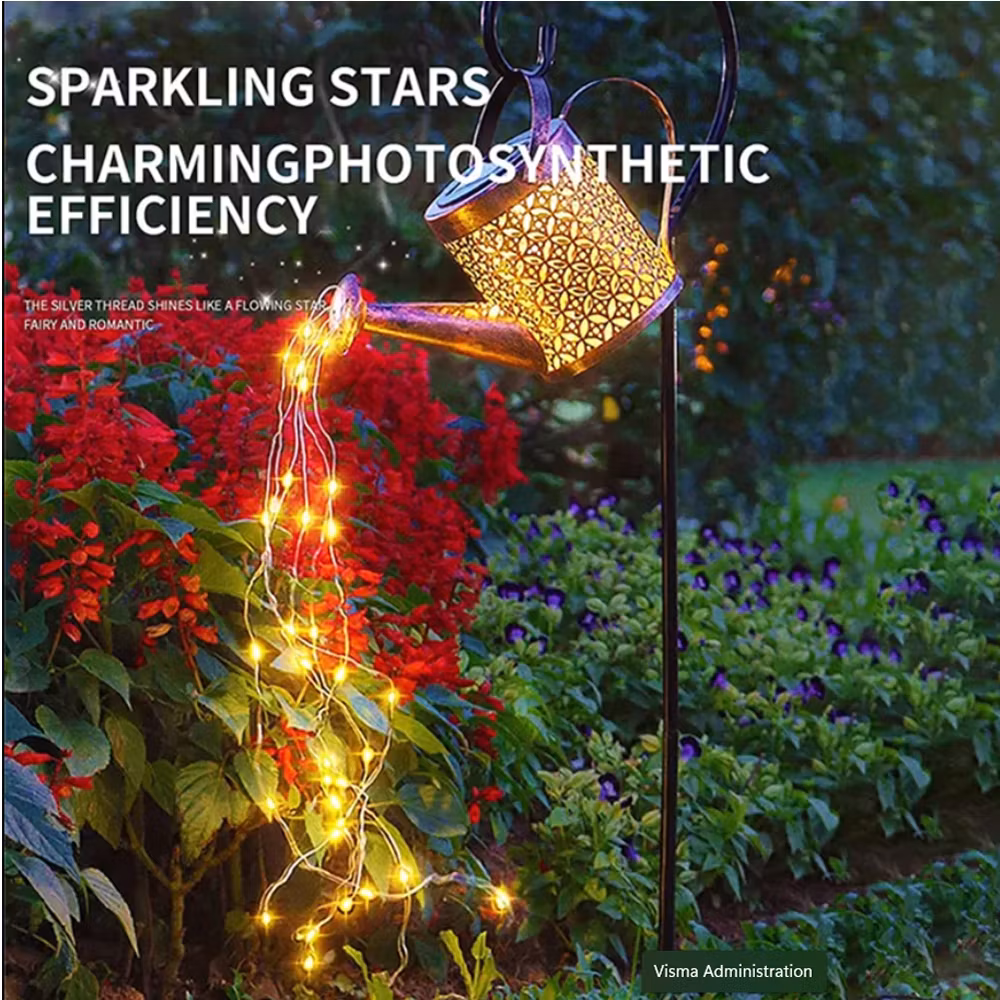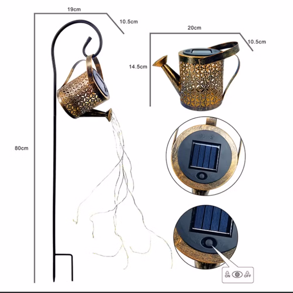 Häftig kanna med belysning. Lyser upp i trädgården/buskar och dylikt. Kannan/Solcellerna laddas upp under dagtid som sedan automatiskt tänds när det blir mörkt. En väldigt stämningsfull solcells kanna som lyser upp under kvällen och natten. Slipp tänka på att ladda eller byta batterier eftersom batteriet laddas upp via solceller.