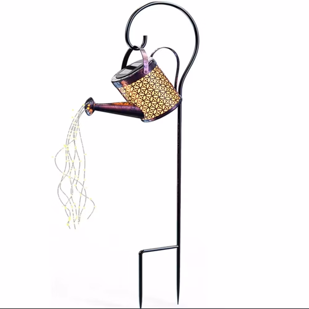 Häftig kanna med belysning. Lyser upp i trädgården/buskar och dylikt. Kannan/Solcellerna laddas upp under dagtid som sedan automatiskt tänds när det blir mörkt. En väldigt stämningsfull solcells kanna som lyser upp under kvällen och natten. Slipp tänka på att ladda eller byta batterier eftersom batteriet laddas upp via solceller.