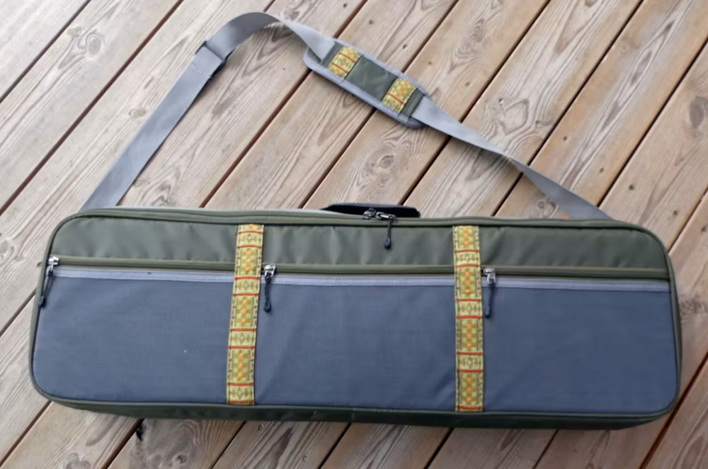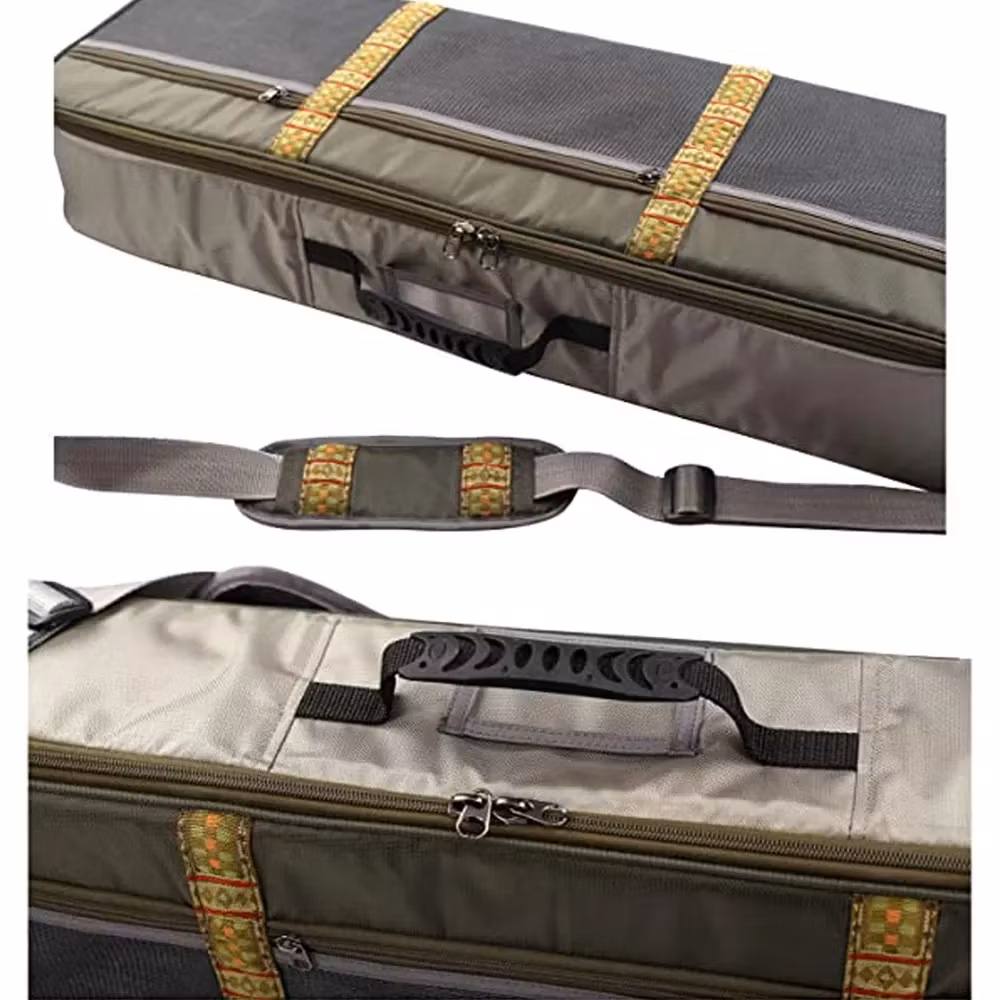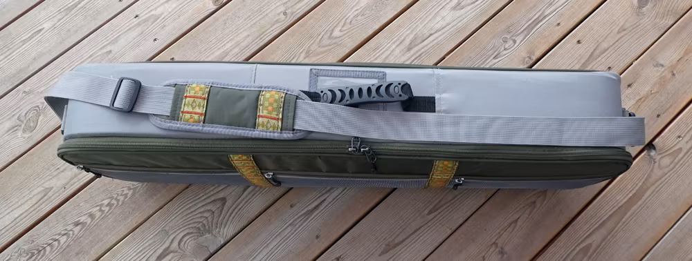 Plats för t.ex. 9´ 4 - delade flugspön/Tub + 5 st Löstagbara fack + Axelrem.